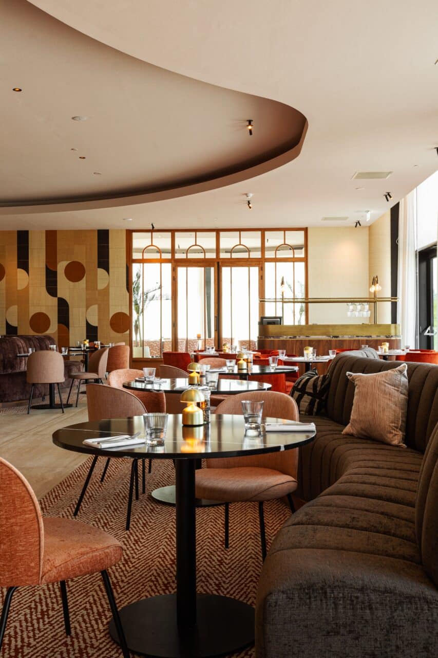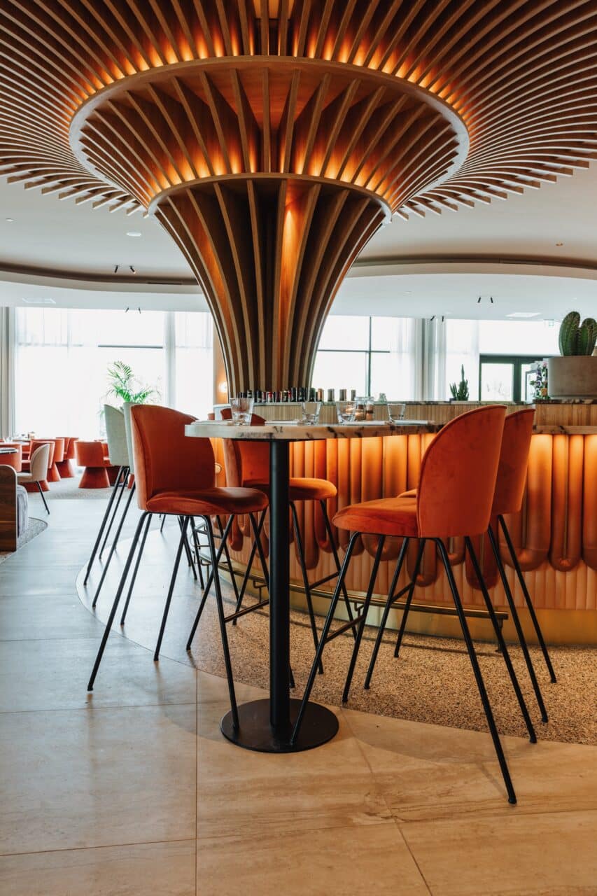 Misschien wel de mooiste van der Valk in Nederland. Hier is meer dan 5000m² naadloos akoestisch plafond gerealiseerd in verschillende maten en kleuren. Ook hier de bekende plafond verhogingen van de van der Valk hotels, dit keer met golvende lijnen.
