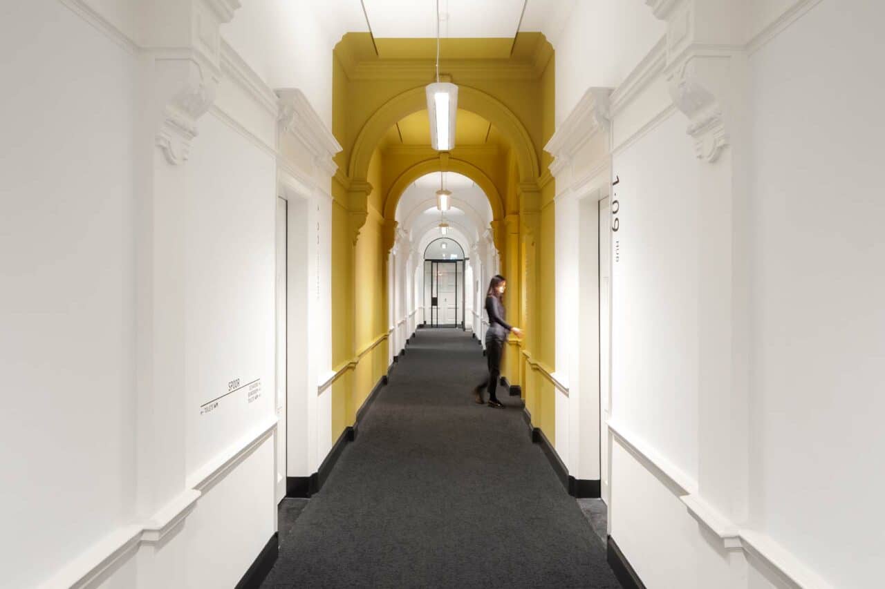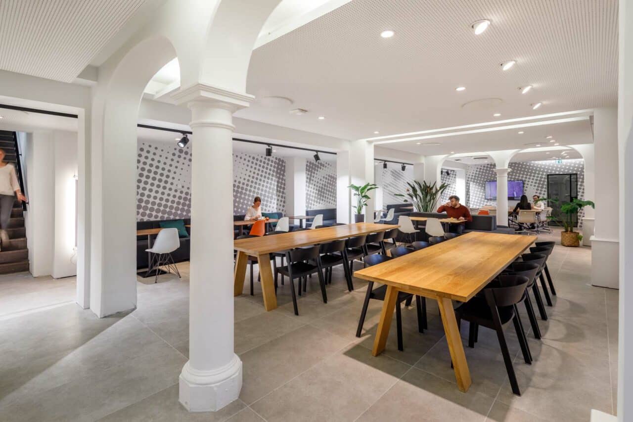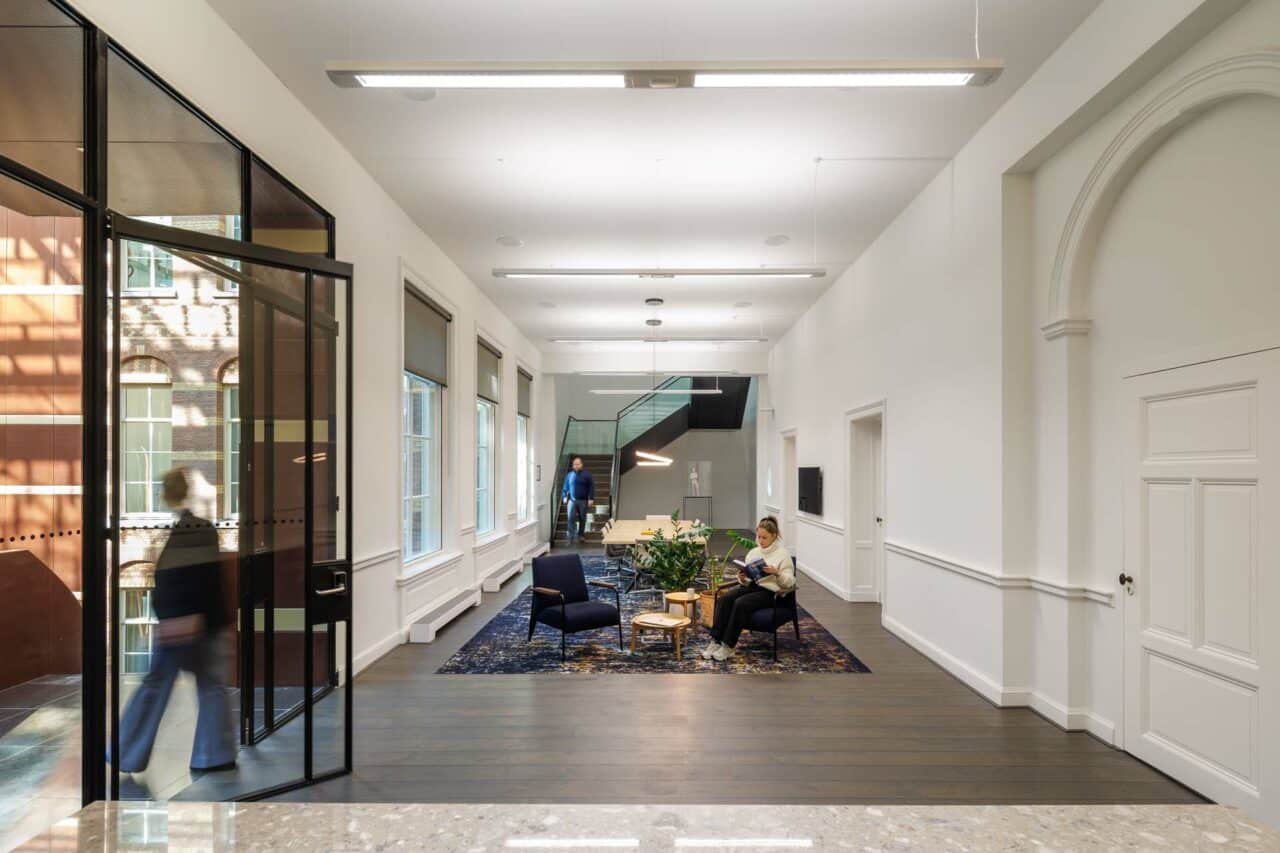KCAP Droogbak heeft besloten om 4000m² Eleganza te plaatsen, om galmen en echo’s te verminderen in de werkomgeving. Het naadloze akoestische plafond is een onzichtbare oplossing dat het monumentale pand in zijn waarden houdt. Precies dat nodig was om van dit project een succes te maken.
