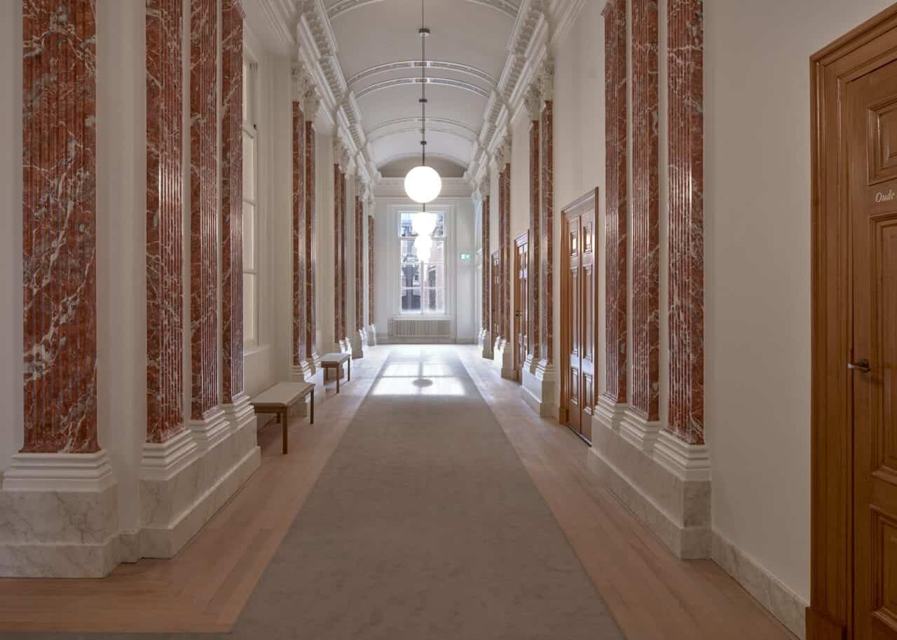 Pennings Akoestiek heeft mogen bijdrage aan het behoudt van cultureel erfgoed van Nederland. We hebben het stadhuis in Groningen voorzien van naadloze akoestische plafonds, zodat de uitstraling van het gebouw in tact blijft en bezoekers in stilte kunnen genieten van de historie. De Eleganza is toegepast, een akoestisch plafond, met de hoogst haalbare akoestische eigenschappen dat onzichtbaar is voor het oog.