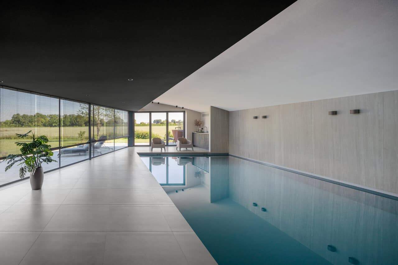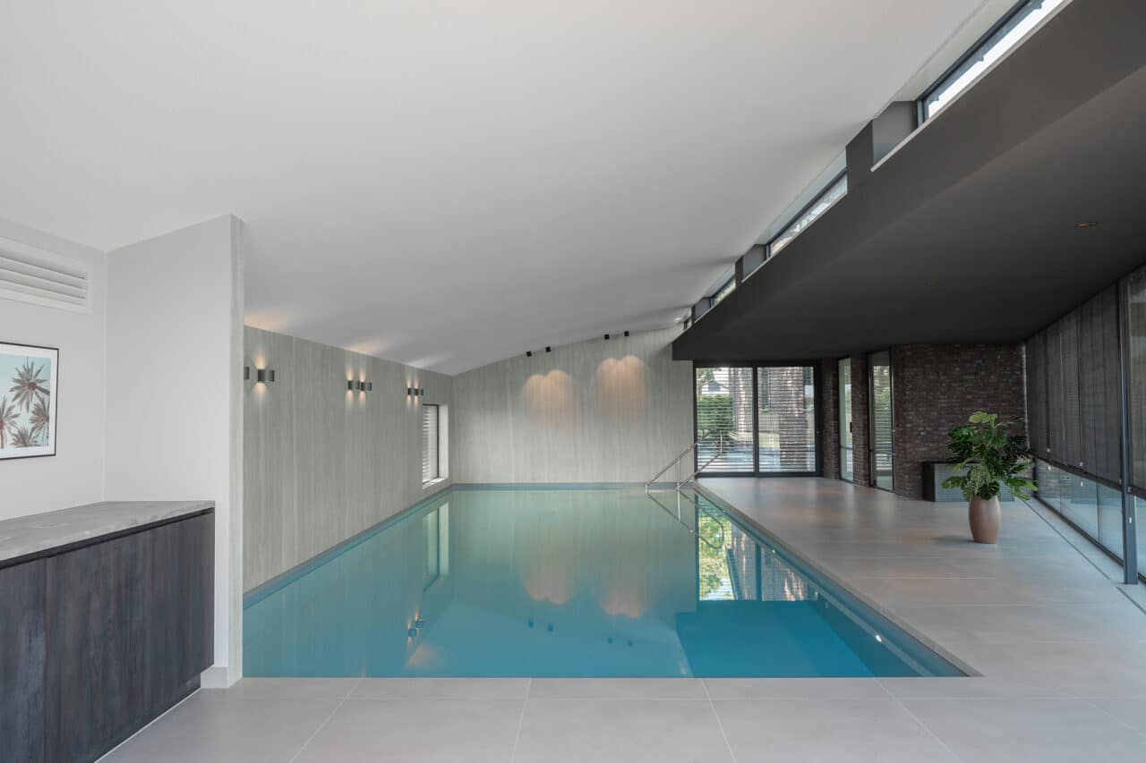 Knauf Eleganza is een akoestische oplossing dat door zijn flexibiliteit geschikt is voor uiteenlopende wensen en ontwerpen. Laat dit een perfect voorbeeld zijn. In zowel de woonkamer, keuken en boven het zwembad zijn gebogen plafonds gemaakt.