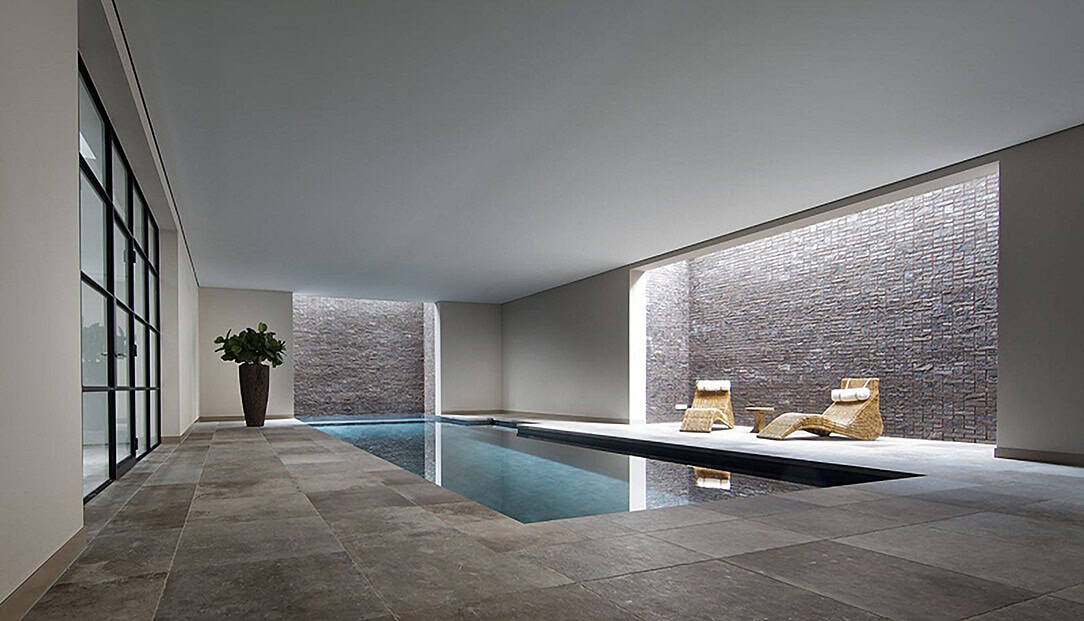 Voor dit zwembad is over het hele oppervlakte een naadloos akoestisch plafond toegepast. Zo kunnen de bewoners uitrusten op de ligstoelen, ontspannen in de sauna en tegelijkertijd plezier maken in het zwembad, zonder dat de geluiden blijven galmen door de ruimte.